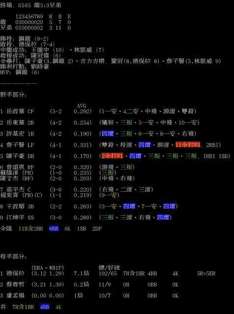 終場,G165 龍5:3兄弟