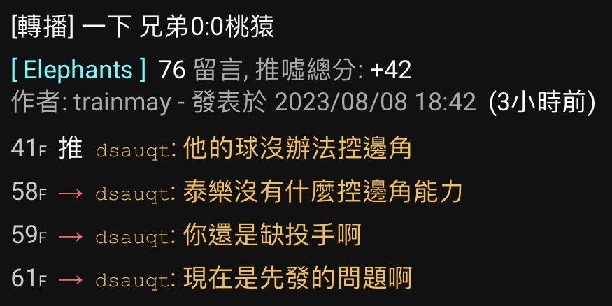 推 jjam: d大那段不就點出泰樂投球問題而已 截推文出來幹嘛XD 08/08 22:29