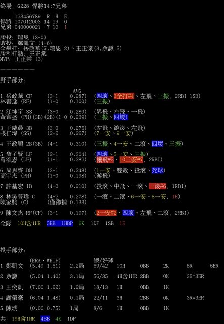 標題[情報] G228 悍將14:7兄弟 全場數據box