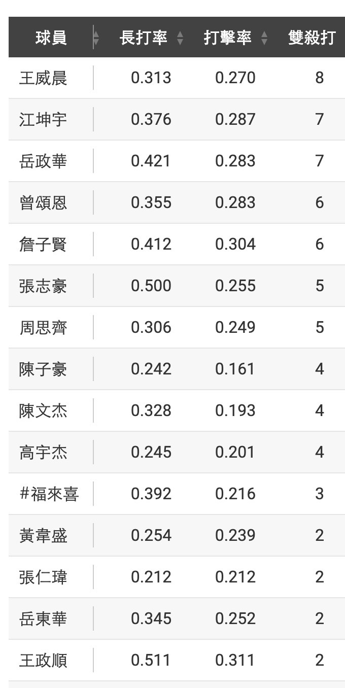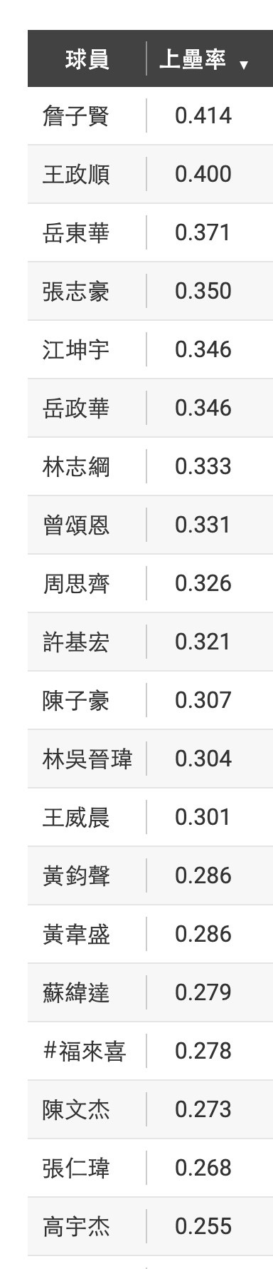 推 WaywayPao: 龍的一棒是李凱威,只是近況很差而已,不然原本上壘率 09/10 20:52