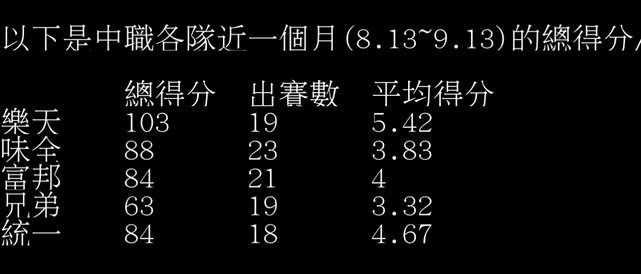 推 citywanderer: 長打時 壘上沒人 所以得分低? 09/14 20:05