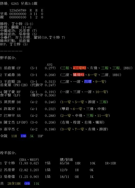 標題[情報] G265 兄弟3:1龍 全場數據box