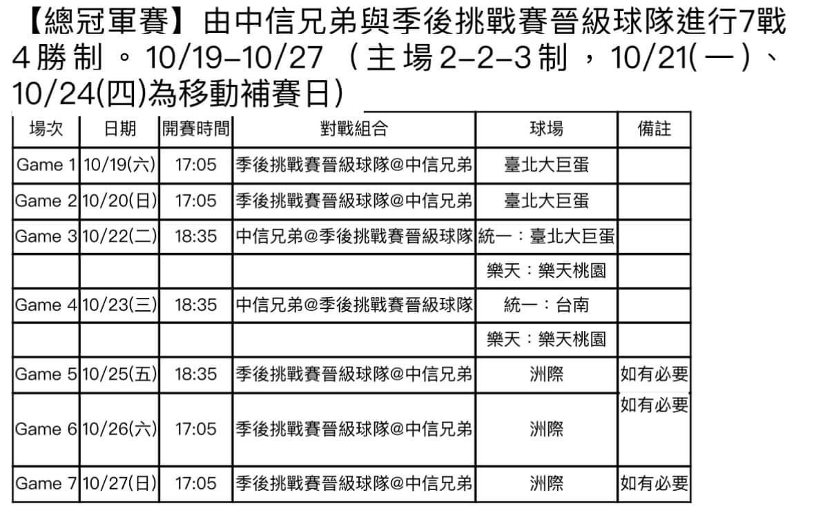 推 jim0619: 至少前三場都巨蛋只要跑一趟台南,之後去台中,G3台南G4 10/09 10:14