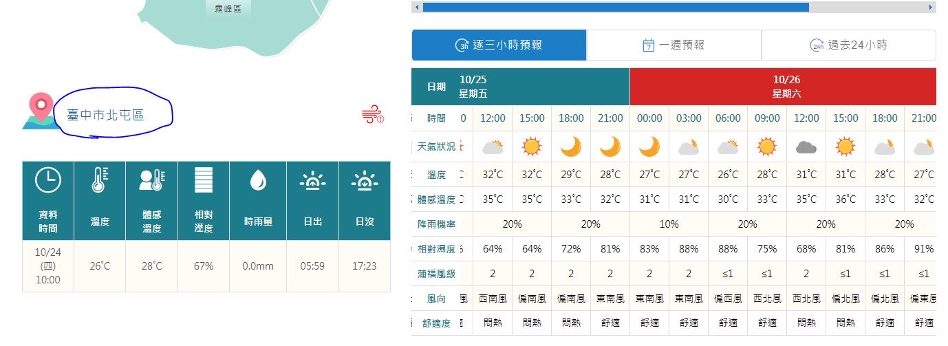 推 yankbarca: 我用中央氣象局官網看北屯區 連三天好天氣欸 10/24 15:10
