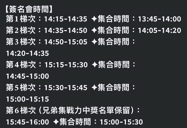 推 trainmay: 簽名會這幾年一直都用報名的方式,只有分組對抗這兩年 11/06 12:56