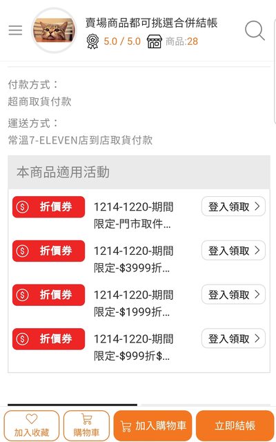 使用7-11 OP會員結帳前領取全站折價券(綠框處) (折價券使用期限11/30至12/06)
