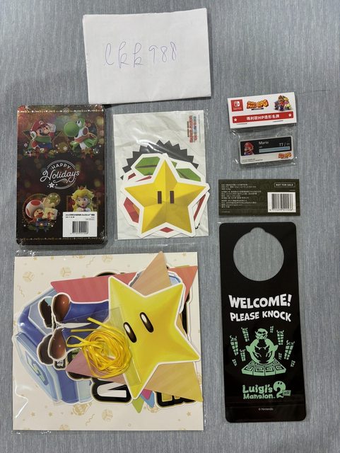 瑪利歐特典:(派對錦旗 or 冬季鐵盒 or 造型名牌 or 摺紙特典 or 房門掛牌)