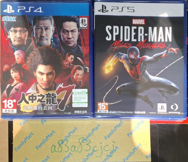 ★【物品名稱】:售 PS5 蜘蛛人 Miles Morales, PS4 人中之龍7 中文版