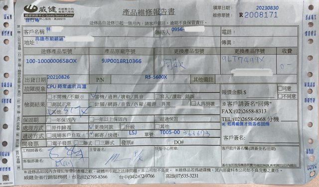 2.保固有無 :有,與威健確認過自出廠日起3年,保固至2024/8/26