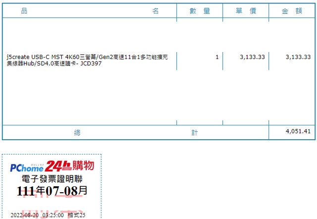 2022/08/20於PChome購入