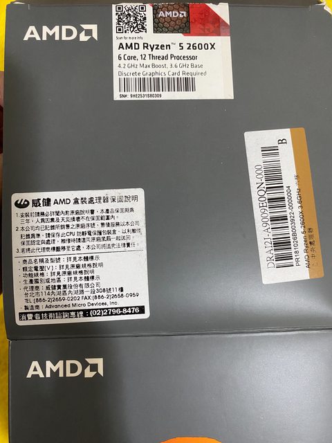 ◎硬體型號: AMD R5-2600X (含未使用之原廠風扇)