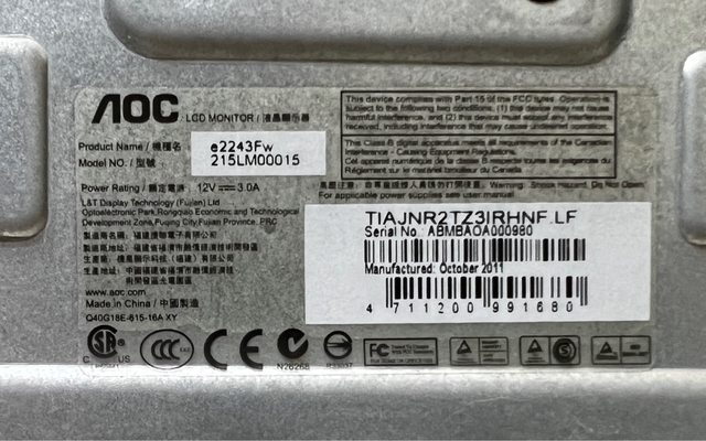 標題[賣/竹北/面交]AOC 22” 螢幕e2243fw