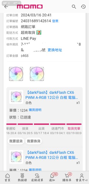 1.[darkFlash] darkFlash CX6 PWM A-RGB 12公分 白框 電腦風扇 2個