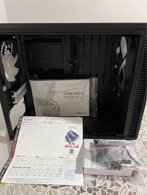 ,原裝風扇及配件都在,惟透明壓克力有些許刮痕及原裝風扇一分二線損壞,有另購買使
