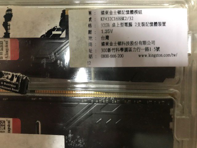 ◎硬體型號: 金士頓 FURY BEAST DDR4 3200 16GX2