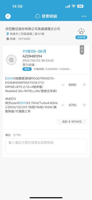 標題[估價] R9-5900x+X570-E+64G半套
