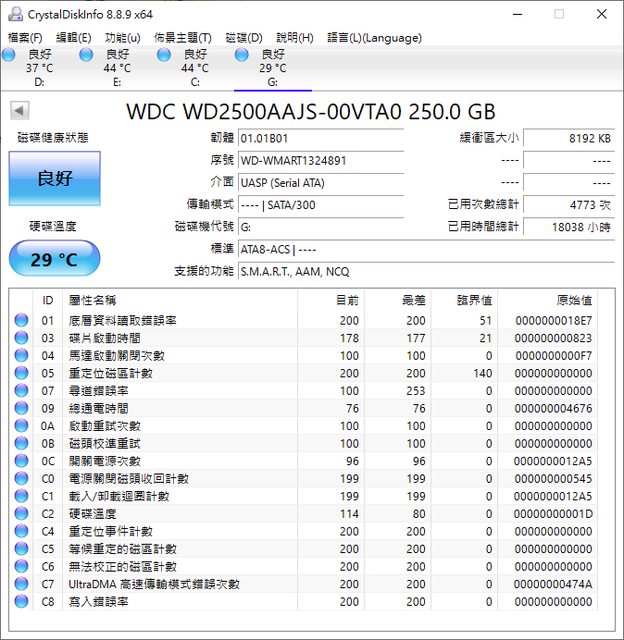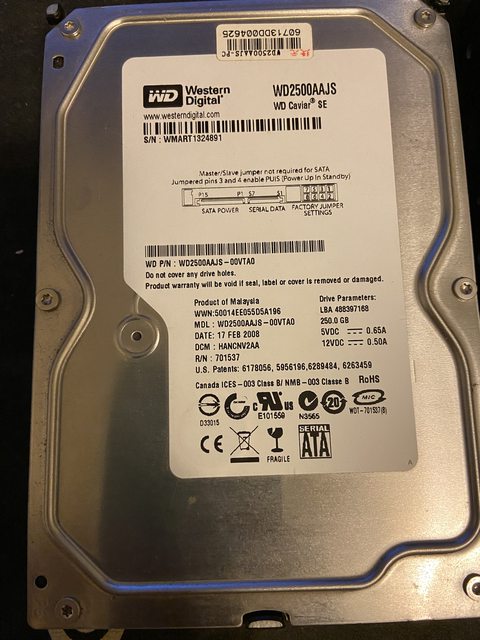 2. WD 3.5吋 250G硬碟 (WD2500AAJS)