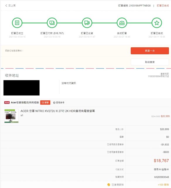 ◎硬體型號: Acer xv272u x 螢幕 (禁止販售未拆封之物品,贈品、獎品、RMA品、電腦相關線材及耗材除外)
