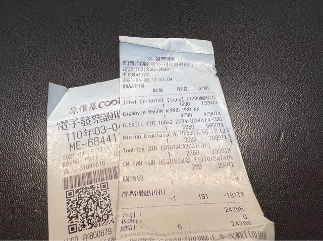 cpu mb ram皆為2021/04/08原價屋購入,除ram終保以外皆過保,散熱器2019/08/23原價