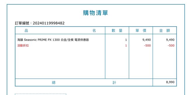 標題[賣/全國/皆可] 海韻 Prime PX1300 白金