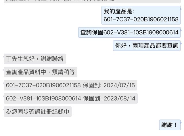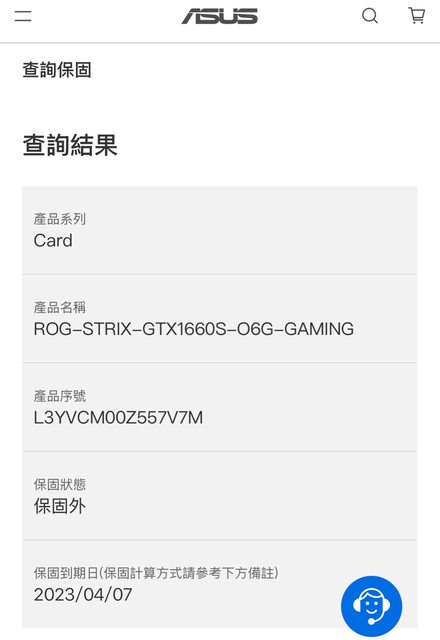 客服查詢之序號保固為2主機板及3顯示卡
