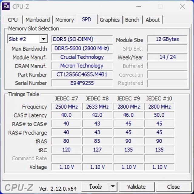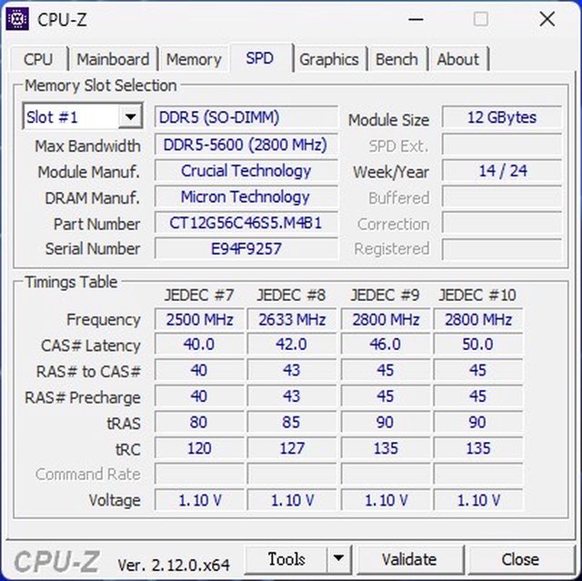 ◎硬體型號:Micron DDR5-5600 雙通道12G