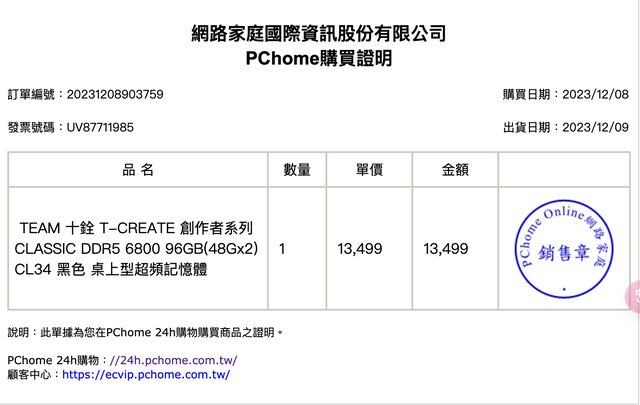 1.購買日期: 2023/12/09