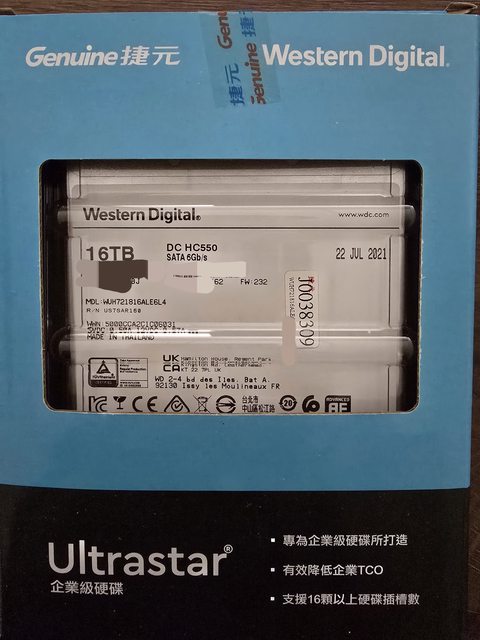 標題[賣/新竹/皆可] WD HC550 企業碟 16T 捷元貨