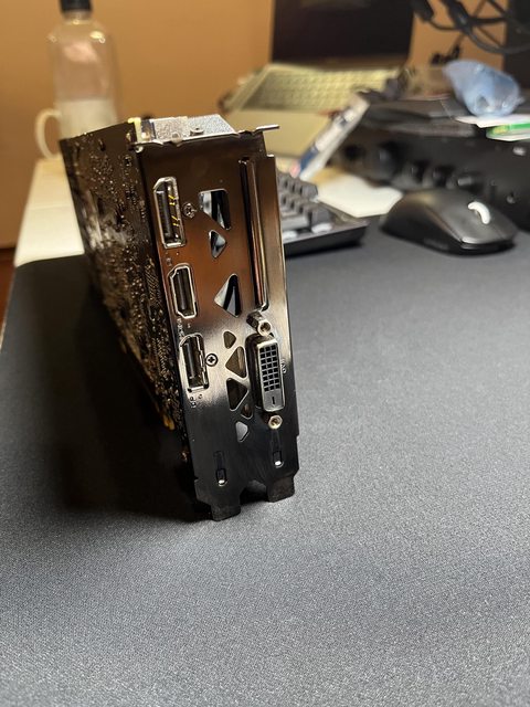 盒子右下角有撞到的痕跡,當時顯卡並不在盒內。