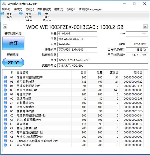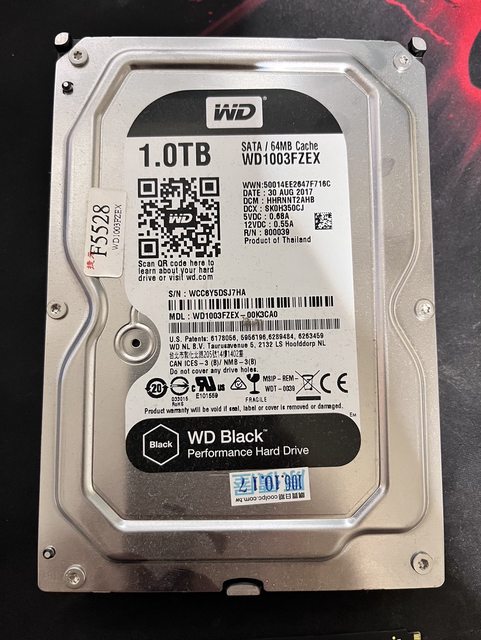 HDD1 :WD 黑標1TB 3.5吋 SATA3(WD1003FZEX)