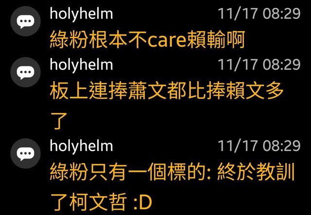 : 連柯文哲網軍都成天綠畜綠畜的罵 我是很難想像這裡面有人會幡然醒悟投給賴啦