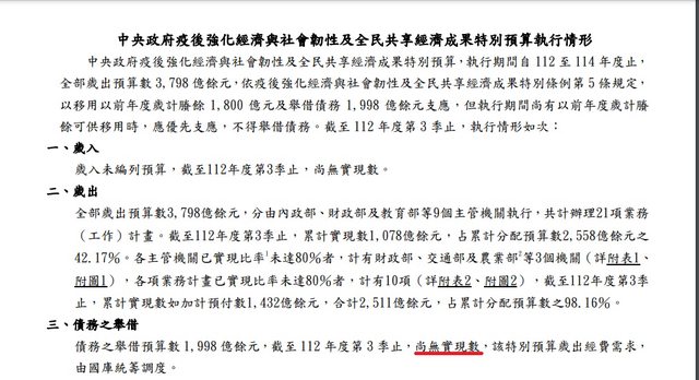 疫後強化經濟:歲出實現數1078億+預付數1432億 債務之舉借