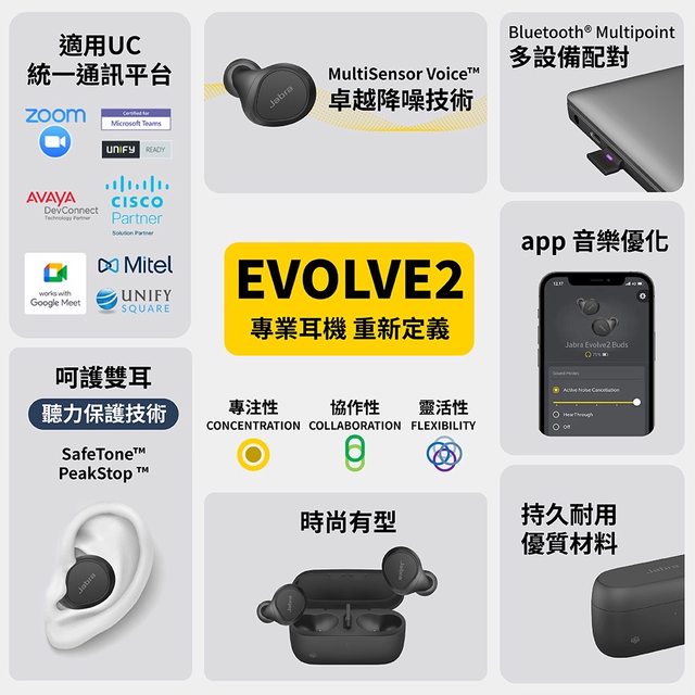 【Jabra】Evolve2 Buds商務會議多點藍牙真無線耳機