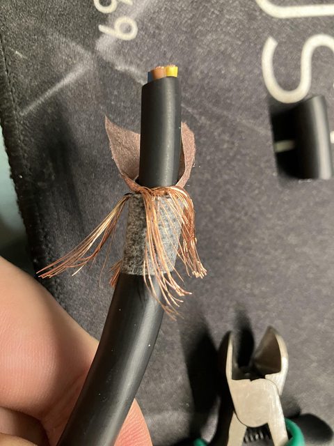用熱縮套把混編drain wire的地線包起方便之後施工