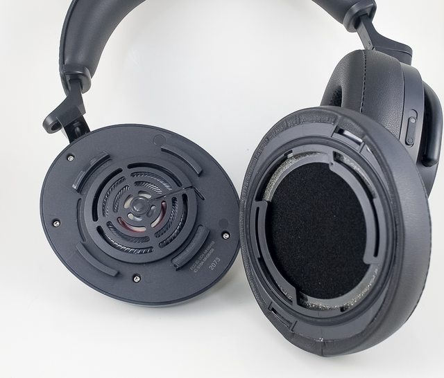 內側採用透氣布料材質,長時間配戴起來不致於悶熱;耳罩採用旋轉卡扣的機構固定,能