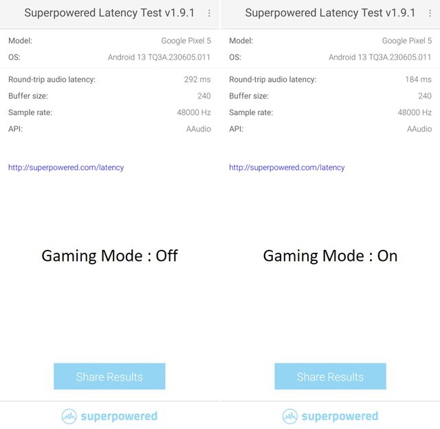 ,因為大多數測試網站 aptX Adaptive 都有更低的延遲,當然如果手機不支援 aptX