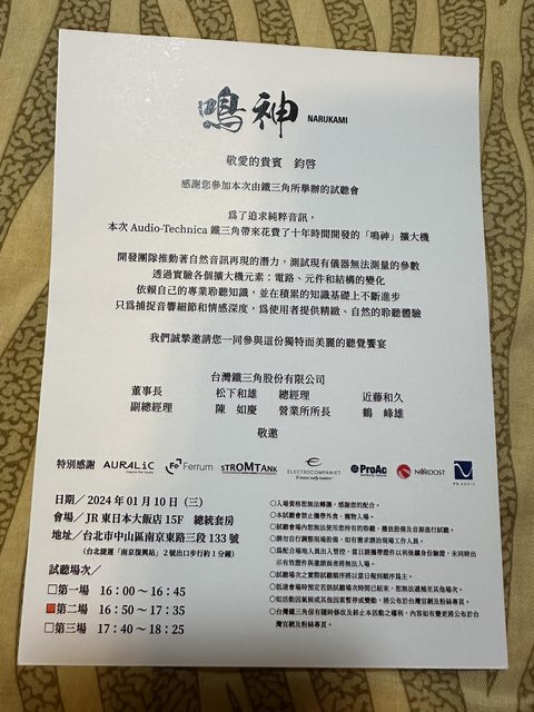 標題[心得] 鳴神NARUKAMI台灣試聽會 蹭聽紀錄
