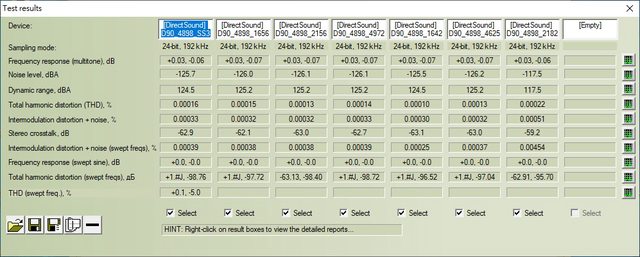RMAA總表,單看數據差異很小,除了最後來插花的OPA2182