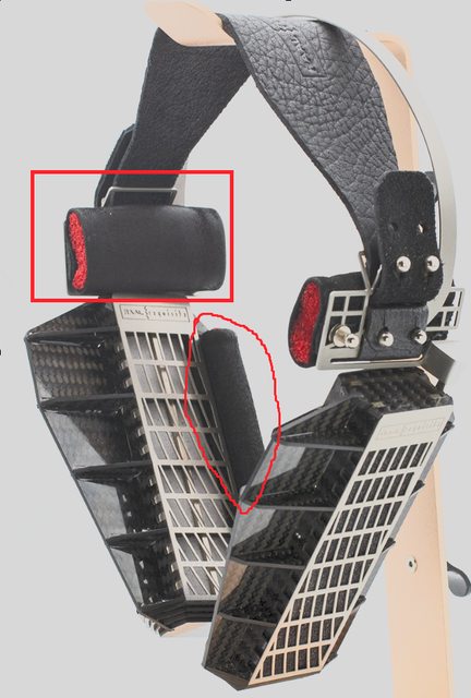 頭戴是一片式的皮革打幾個洞跟腰帶一樣用扣的調整位置,很容易去皮革店訂製想要的大