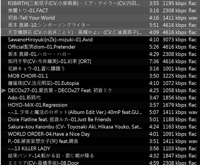 雖整份清單實際聽下來跟初音的正相關不到40%