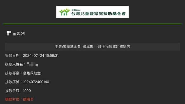 個人將致贈稅後 50000 元批幣,並且捐贈 1000 元給家扶基金會。