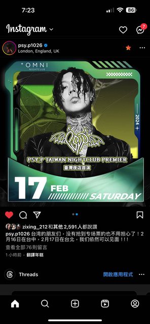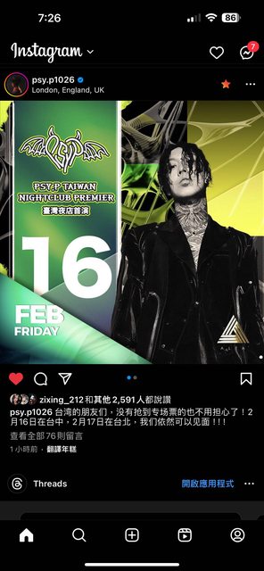 標題[活動] PSY.P 台北&台中夜店演出 2/16 & 17