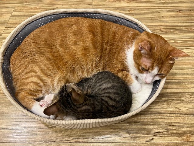 三月中的時候整窩沒開眼的小貓被撿到,由好心的中途親手奶大
