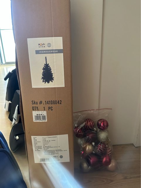 2. 3呎黑色聖誕樹及紅金色系裝飾