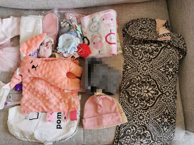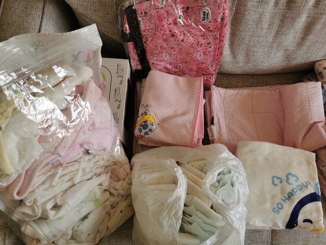 保溫提袋(新)、蝴蝶包巾(舊,可能有奶漬)、紗布衣(舊,可能有奶漬)