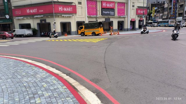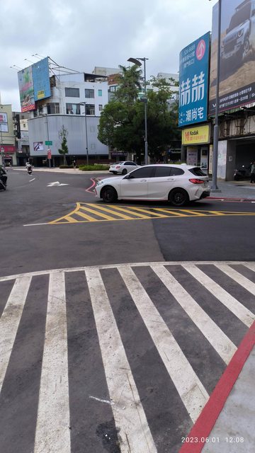 : 很容易就會壓到槽化線標線,根本就是故意讓汽機車違規的陷阱區域。