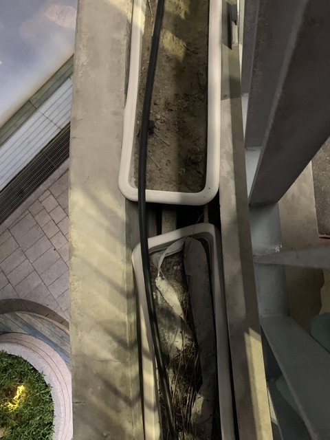 有看一下車道水溝,跟外牆的花圃好像不相通,