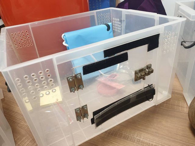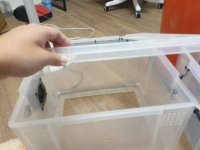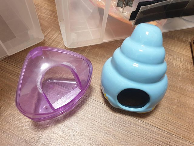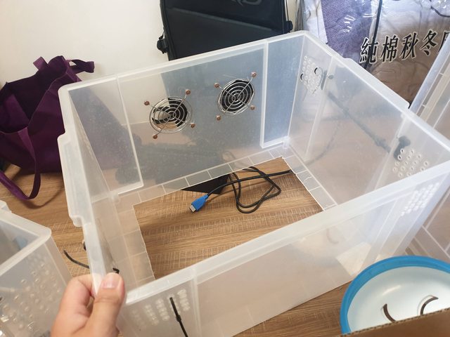 由於之前養的是睡鼠,需要爬上爬下的,故其中兩個整理箱是沒有底部的,可疊起來使用,其中一個有USB風扇或是通氣孔,若有養這類型需要攀爬的鼠類或是蜜袋鼯都很適合。
