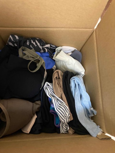 內容物有一般衣服、運動褲及背心、內衣(c)、孕婦洋裝等