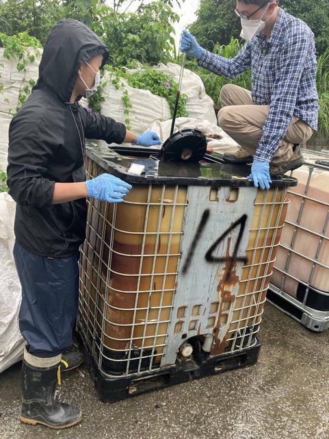 量、裝滿廢棄事業溶劑的桶槽共16桶,其中1桶容量有減少;業者則稱桶槽為前一手留下